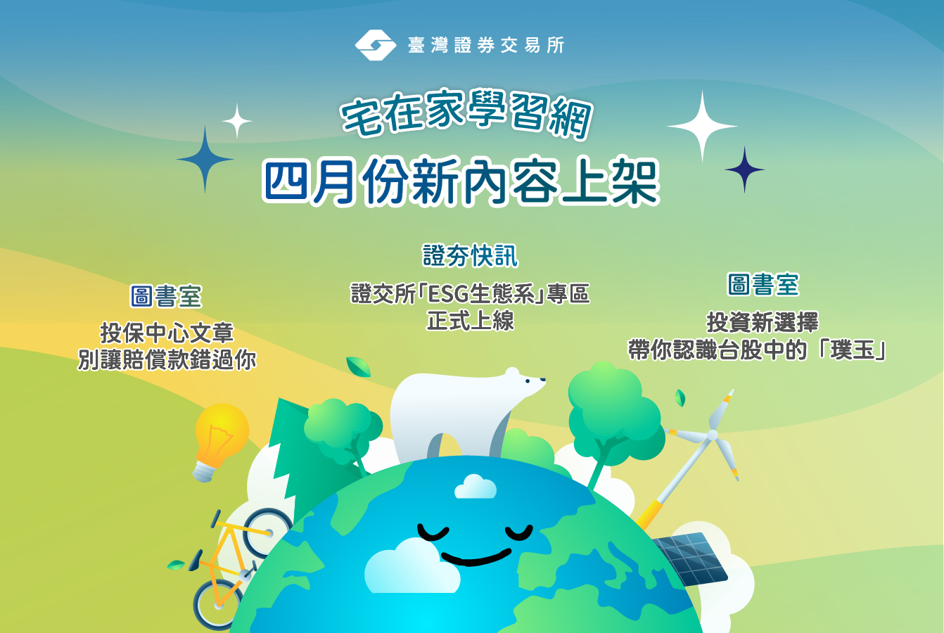 臺灣證券交易所於2026年3月23日「世界氣候日」正式在永續發展官網推出「ESG生態系」專區,以「Power Up TW, Level Up ESG」為核心,系統化呈現其推動永續發展的策略與成果,展現引領臺灣資本市場邁向永續之決心與行動力。「ESG生態系」專區聚焦八大ESG主軸,企業可即時掌握政策方向與實務推動重點,投資人亦可對市場ESG發展趨勢更為理解。此外,專區更將定期滾動更新,持續釋出最新政策進展與執行成果,協助各界即時掌握ESG發展趨勢與脈動。 證交所亦積極落實自身永續轉型,位於臺北101大樓辦公區域已達成再生能源使用率100%之目標,並取得ISO 14068-1碳中和查證,充分展現證交所減碳之落實成效。同時,證交所更致力推動「臺灣自然碳匯永續共生行動計畫」,打造自然碳匯示範案例,協助上市公司實踐永續發展,強化企業環境永續責任。證交所藉由「ESG生態系」專區之設置,串聯各利害關係人深化永續作為,擴大永續影響力,加速企業永續轉型並為我國奠定穩固基礎,進一步提升臺灣資本市場之國際競爭力。 詳細內容請參閱證交所「ESG生態系」專區https://www.twse.com.tw/ESG/zh/ESGecology.html}