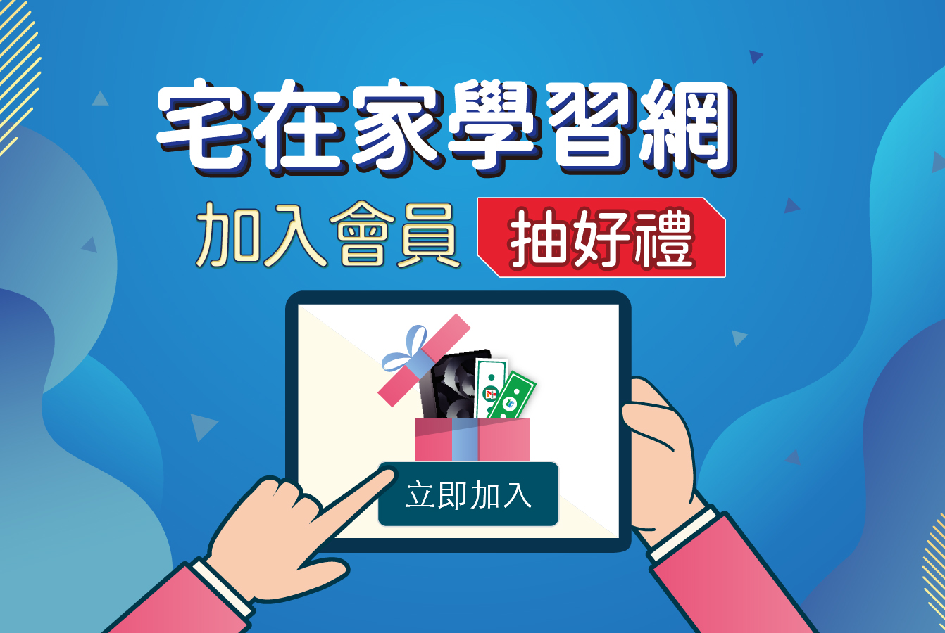 於宅在家學習網完成會員註冊並訂閱宅在家學習網電子報,即可獲得抽獎資格。